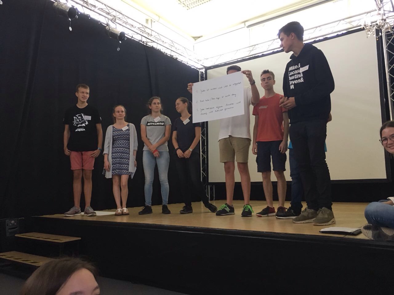 Das Projekt fand in diesem Jahr unter dem Namen „Hansenbergspirit“ statt. Ziel war es den neuen Schülern eine Plattform zugeben, um das Thema Hansenbergspirit und was er bedeuten soll, zu diskutieren und reflektieren. Wir als Alumni entwickelten im Vorhinein ein Konzept, um möglichst vielfältig und aus unterschiedlichen Sichten ein Blick auf die Dinge zu werfen. Da wir mit sieben Alumni am Montag vor Ort waren, teilten wir die neuen Hansenberger in kleine Gruppen von bis zu acht Leuten, sodass jeder in den kleinen Kreisen zu Wort kommen konnte. Im persönlichen Gespräch tauschten wir uns so offen aus, diskutierten über Zitate von Alumni (Danke, an alle die unseren Fragebogen beantwortet haben ;D), sammelten die persönlichen No-gos der einzelnen und versuchten als letztes gemeinsam drei goldene Regeln aufzustellen. Diese sollten als Konsens für den gesamten Jahrgang dienen. Am Ende des Tages hatten wir somit sieben kleine Präsentationen, über persönliche Grenzen, Privatsphäre und gemeinsame Ansprüche.