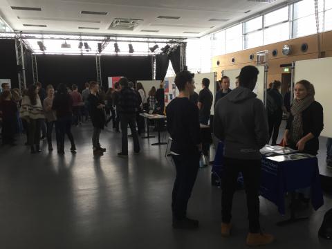 Am Samstag, den 14. Januar, durften wir so auch dieses Jahr wieder etwa 30 Ehemalige und weitere externe Referenten, so zum Beispiel von der European Business School oder der Frankfurt School of Finance and Management, begrüßen. Im Rahmen einer Messe hatten die aktuellen Schüler und Schülerinnen die Möglichkeit, mit den Alumni ins Gespräch zu kommen und sich über ihre Möglichkeiten nach dem Abitur zu informieren. Dies beinhaltete nicht nur verschiedene Studiengänge, sondern auch Stiftungen wie die Stiftung der Deutschen Wirtschaft oder das Evangelische Studienwerk stellten sich vor. Auch über Studienaufenthalte im Ausland konnte man sich informieren.